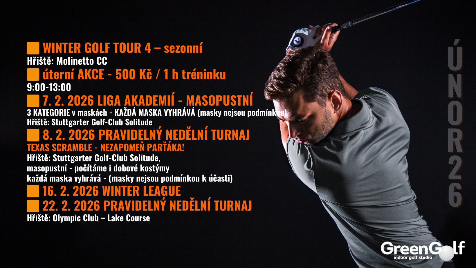 přinášíme vám únorový program v GreenGolfu a skvělou příležitost, jak si užít víc golfu za méně peněz.
